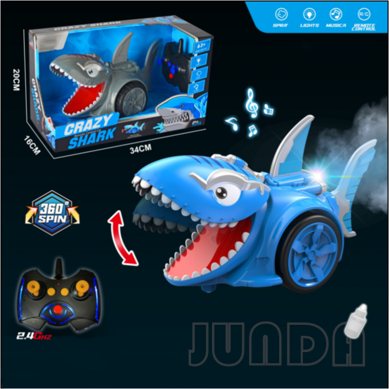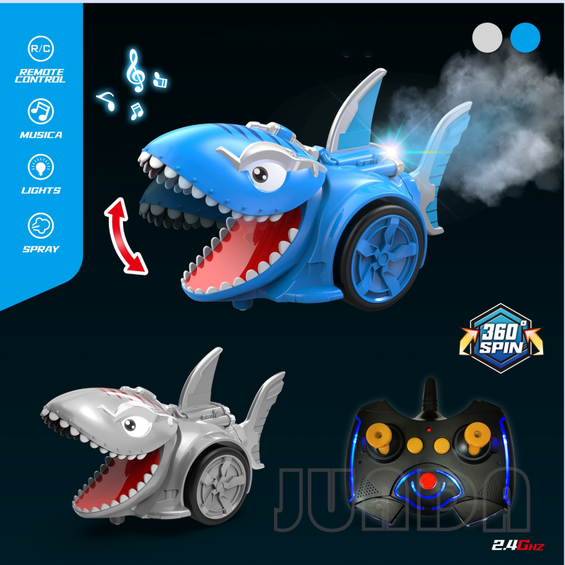 Forward/Backward,Turn left/right,Demo, lights, sounds ,rotation ,spraying , their mouth open and close when walking