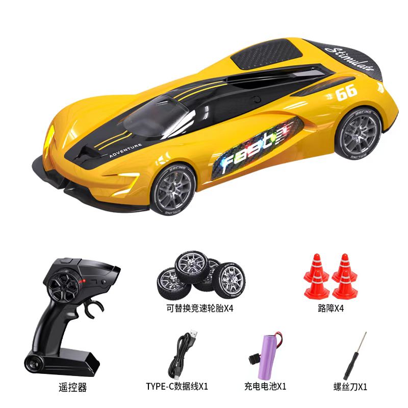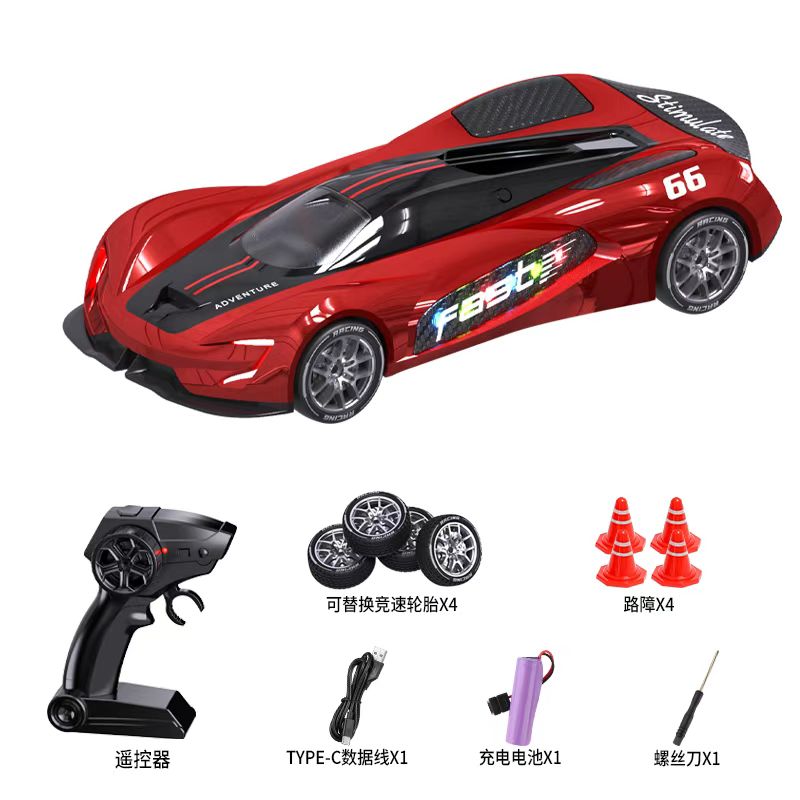 Forward, backward, drift, left and right rotation, music, led light,tail wing,ties replacement.