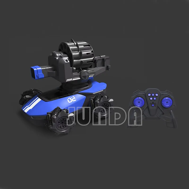 Features: 2.4G control,right/left turn,go up/down, left/right side drifting, soft bullets shooting , adjustable barrel height and auto laucher