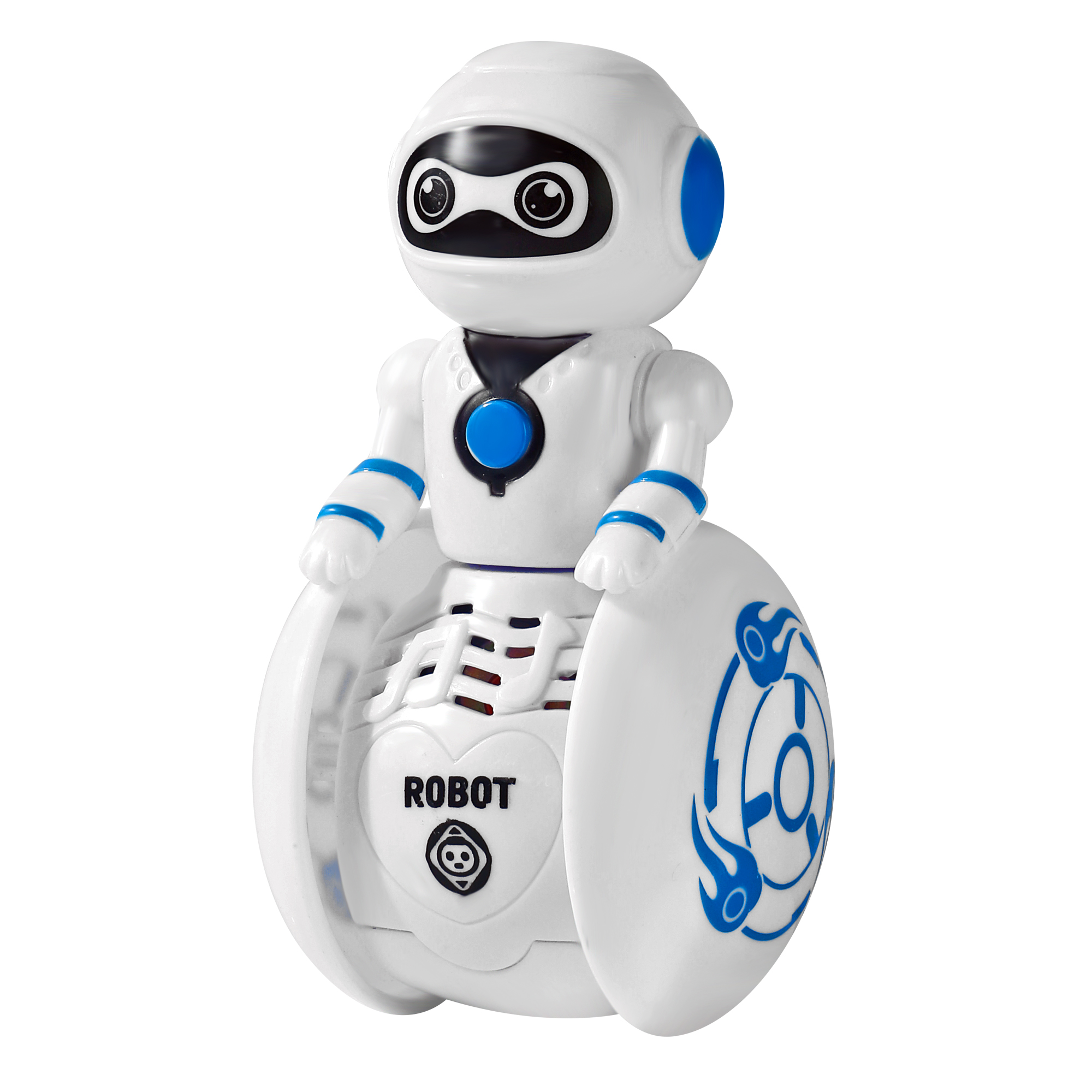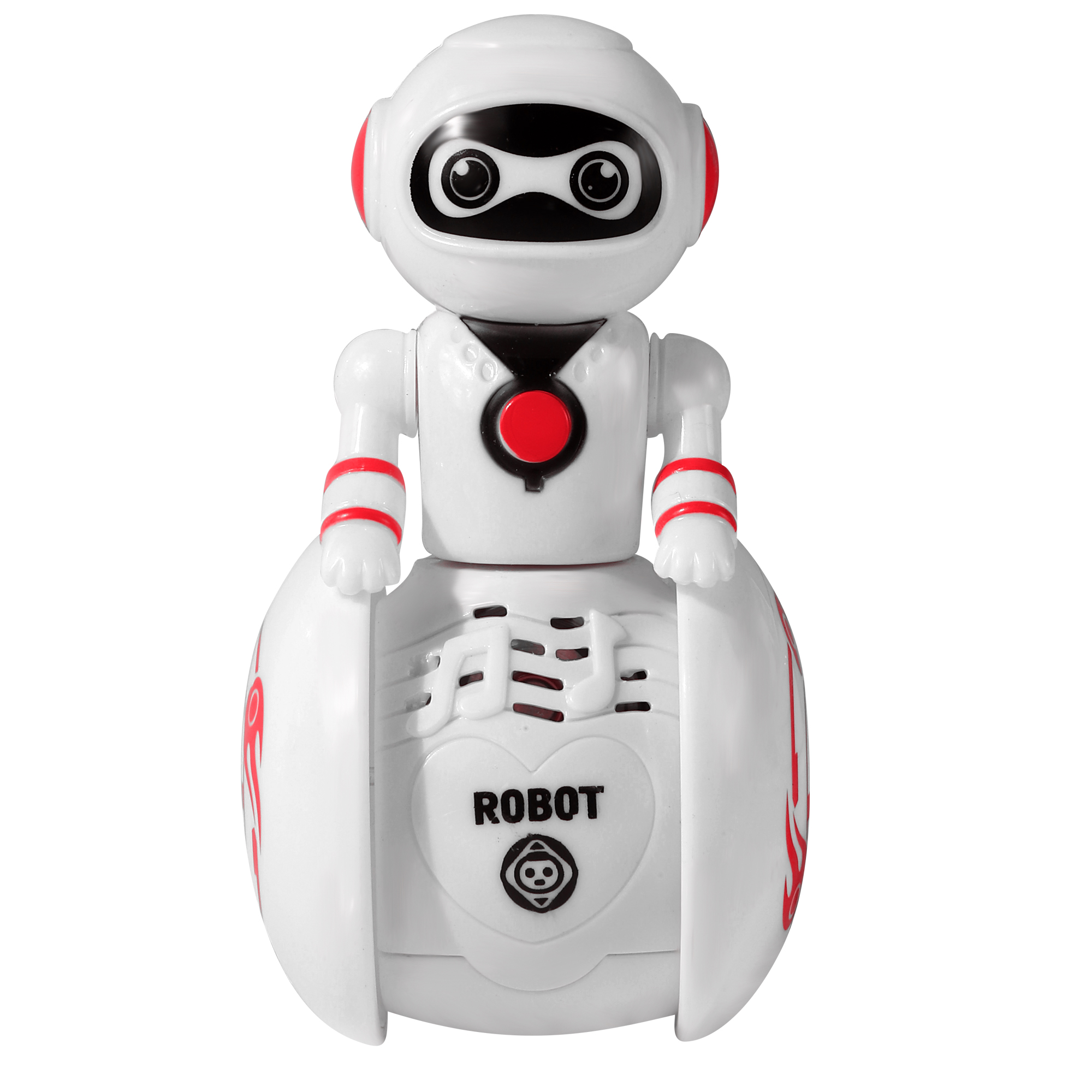 flexible arms,5 different voices ,red and blue lights ,clap sensing make sounds,body swing back and forth,body can rotation with 180°