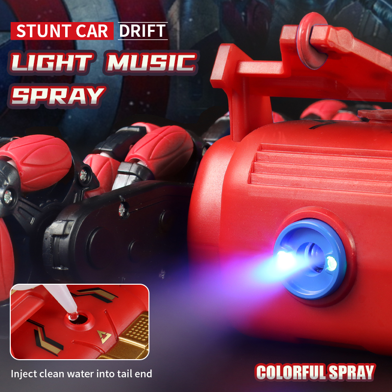 Forward/Backward,Turn left/right,double side rotation,spray,left/right moving ,lights,transformer,gesture control ,Snaking position, twisting drift, double-sided driving.